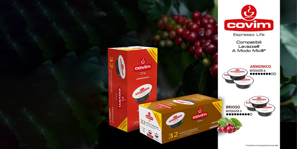 Covim Ora Compatibili con il Sistema Lavazza® A Modo Mio® sono disponibili nei nuovi FORMATI CONVENIENZA  da 32  capsule autoprotette.